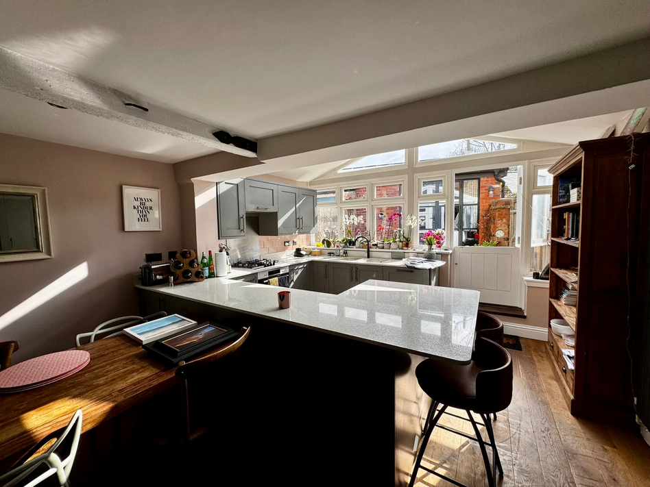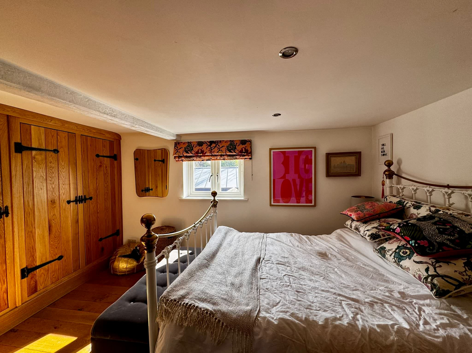 A longstanding client asked me for help with her new home in Sissinghurst, to help her create a ‘lovenest’ with a focus on attracting a strong man into her life. I asked her to paint the beams white as they were very heavy and divisive in the living room and the bedroom.