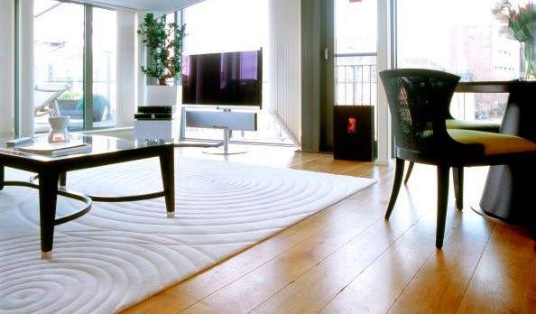 Working with designer Annette Nix during her time at Tai Ping, Sarah McAllister created this bespoke ripple rug to connect to the waters of the nearby canal and to create movement in the apartment.